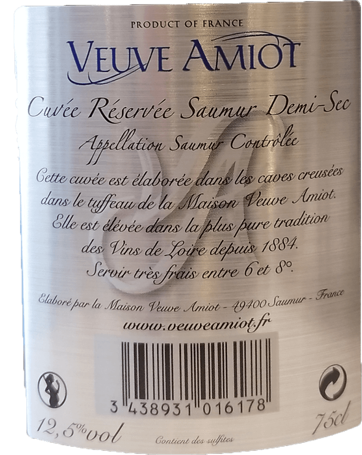 The Cuvée Réservée Demi Sec is characterized by its lively bubbles rising through a pale yellow coloured wine. A nose of white fruits: green apples, pears, quinces combine notes of brioche while the taste is suave which retains the fresh liveliness of Chenin and Chardonnay. An appetizing freshness is expressed, without any extravagance with citrus notes.