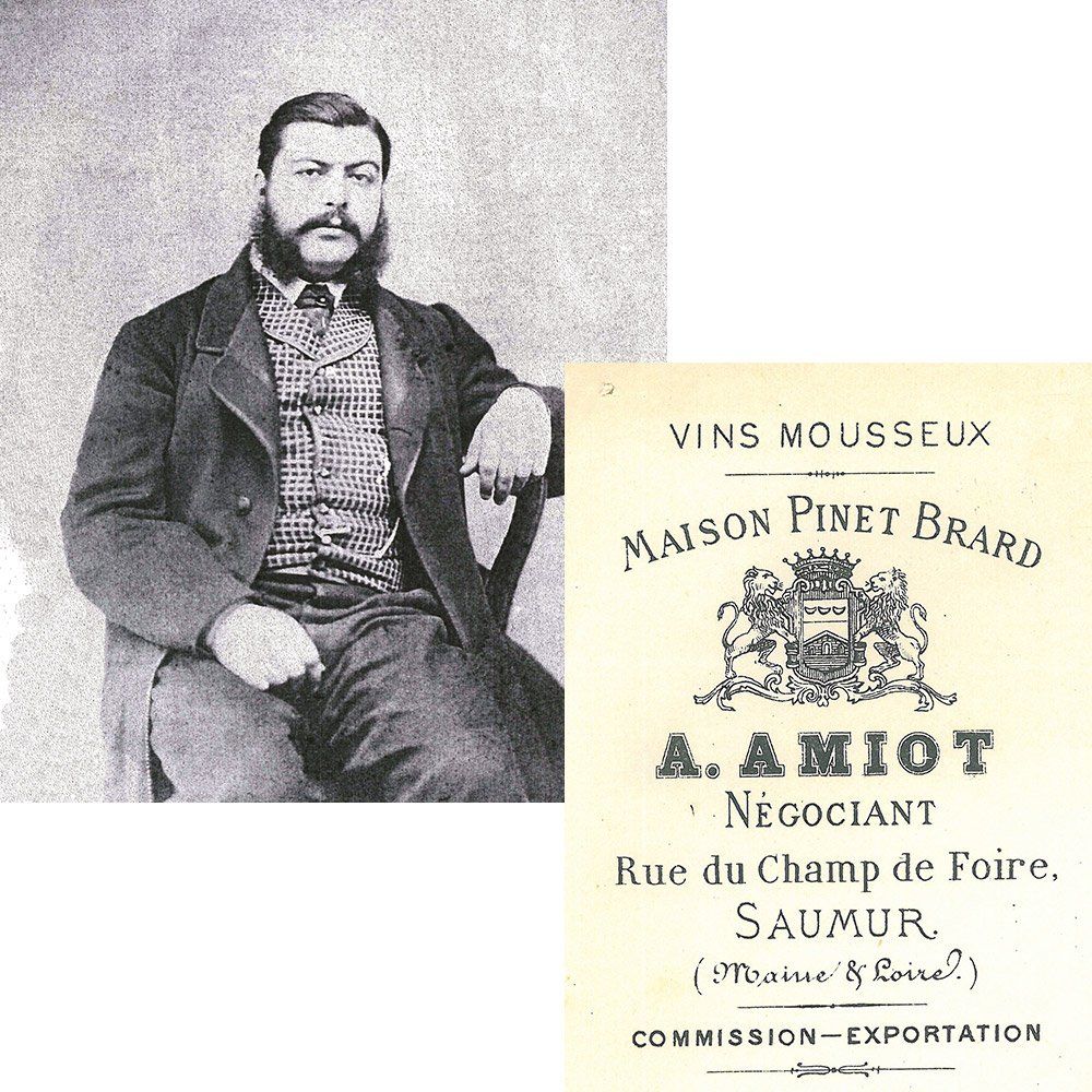 C’est en 1871 qu’Armand Amiot rachète le fond de commerce de Mme Veuve Pinet, exploité à Saumur et obtient le droit de prendre le titre de "successeur de Mme Pinet". Il s’installe alors en tant que négociant en vins rue du Champs de Foire à Saumur.